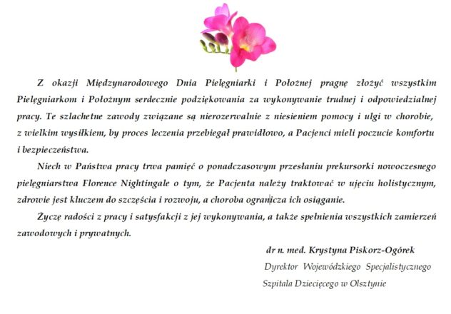Podczas spotkania z Pielęgniarkami Oddziałowymi i Pielęgniarkami kierującymi różnymi komórkami Szpitala, Dyrekcja przekazała wszystkim Pielęgniarkom pracującym w naszej placówce życzenia i podziękowania.