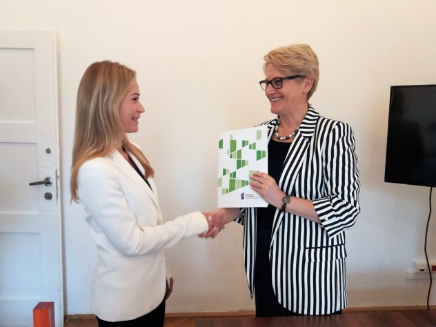 Anna Goławska (Zastępca Dyrektora w Departamencie Funduszy Europejskich Ministerstwa Zdrowia) i dr n. med. Krystyna Piskorz-Ogórek (Dyrektor Wojewódzkiego Specjalistycznego Szpitala Dziecięcego w Olsztynie)