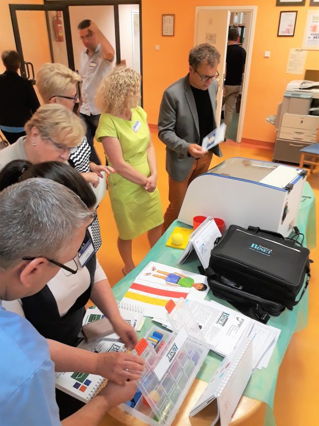 Od lewej stoją: mgr Małgorzata Roman (Pielęgniarka Oddziałowa Oddziału Chirurgii Głowy i Szyi), doktor Wacław Kopala (Ordynator Oddziału Chirurgii Głowy i Szyi w zakresie otolaryngologii), mgr Marta Kossut (Kierownik Poradni Psychologicznej), dr n. med. Krystyna Piskorz-Ogórek (Dyrektor Wojewódzkiego Specjalistycznego Szpitala Dziecięcego w Olsztynie), dr n. med. Krzysztof Dowgierd (Kierownik Oddziału Chirurgii Głowy i Szyi w zakresie chirurgii szczękowo-twarzowej), Piotr Wichowski (Prezes Stowarzyszenia), dr Małgorzata Moszyńska (Kierownik Centrum Leczenia i Terapii Autyzmu)