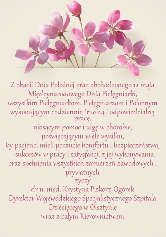 Życzenia z okazji Dnia Położnej i Międzynarodowego Dnia Pielęgniarki