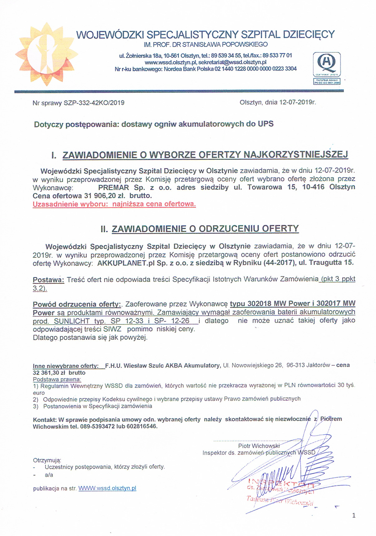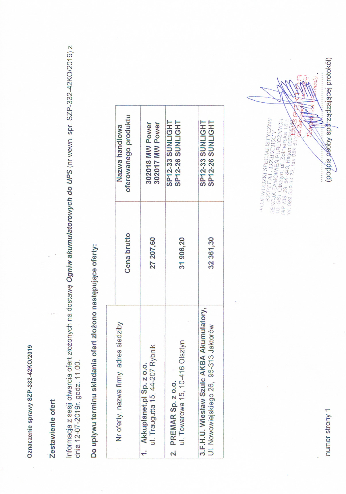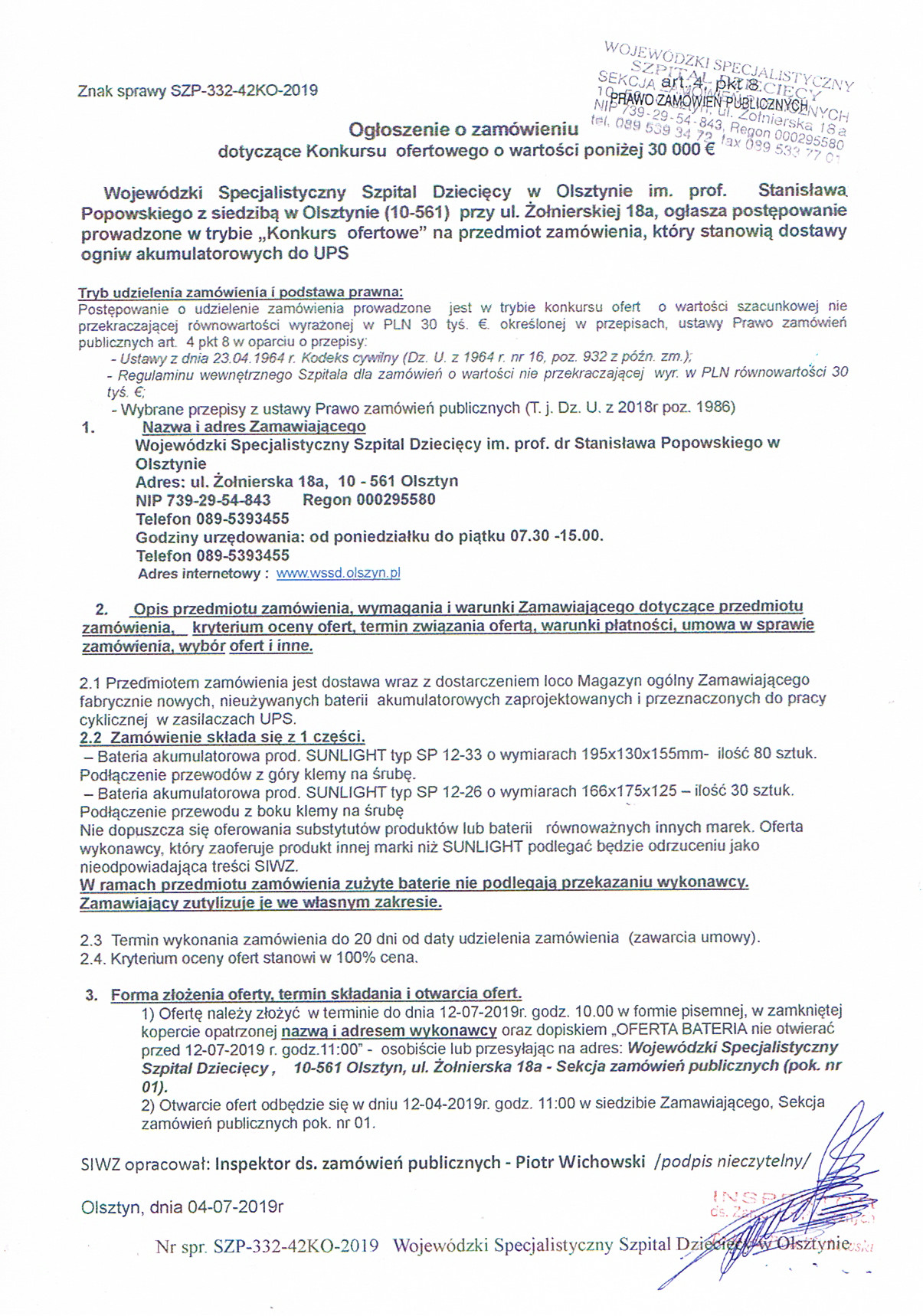 Ogniwa akumulatorowe do UPS (Nr ref. sprawy SZP-332-42KO-2019)