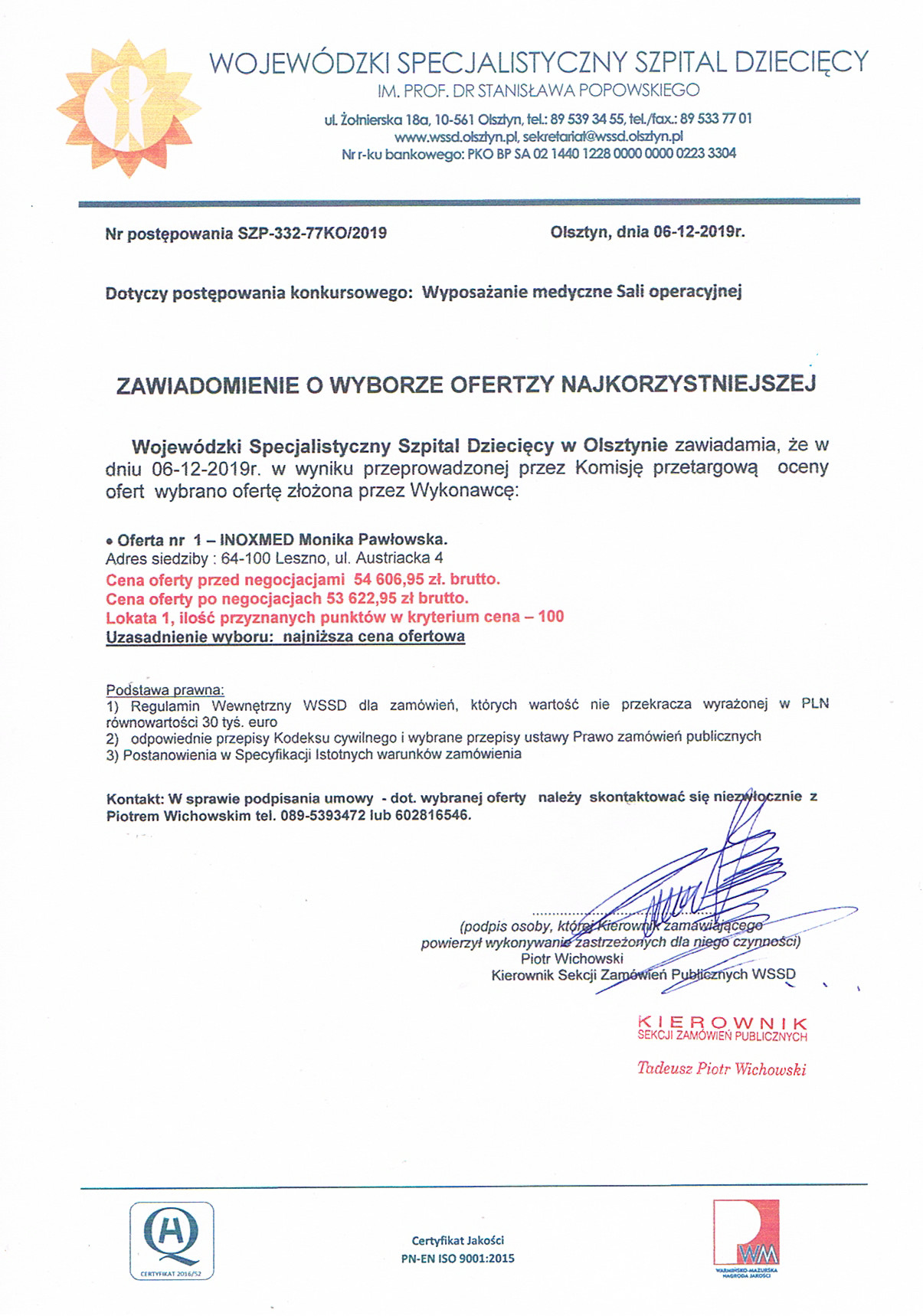 Wyposażanie medyczne Sali operacyjnej (Nr wewn. spr. SZP-332-77KO-2019)