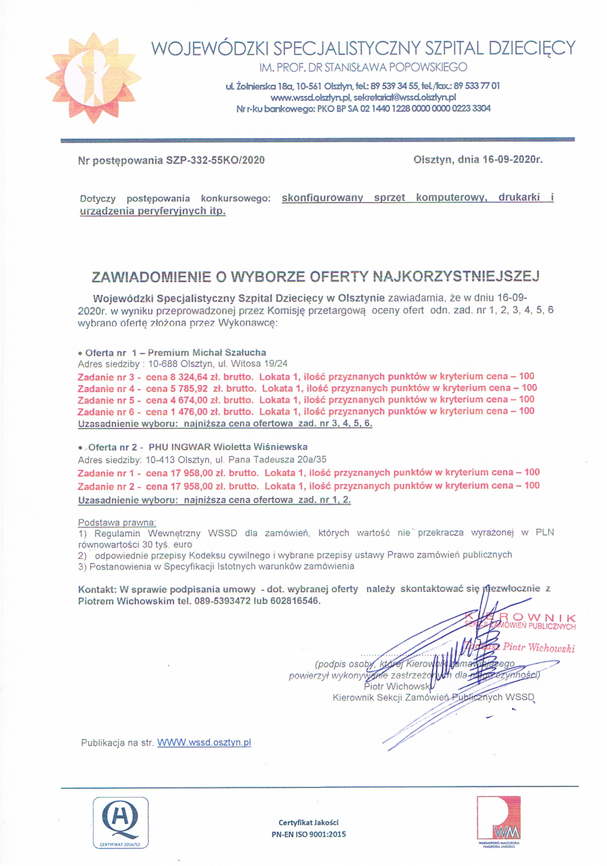 | Wybór oferty najkorzystniejszej | 2020-09-16 15:01:40 |