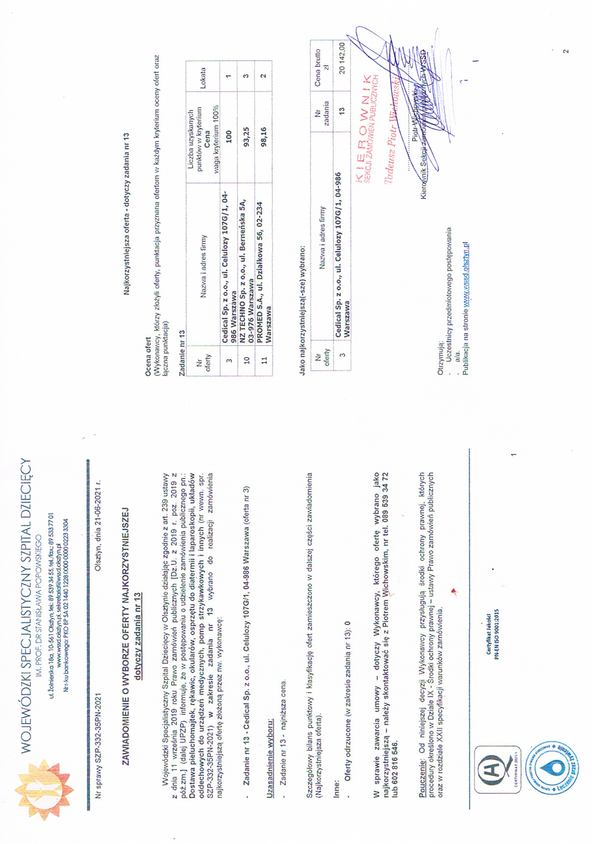 Pieluchomajtki, rękawice, okulary, osprzęt do diatermii i laparoskopii, układy oddechowe do urządzeń medycznych, pompy strzykawkowe i inne (Nr wewn. spr SZP-332-35PN-2021)