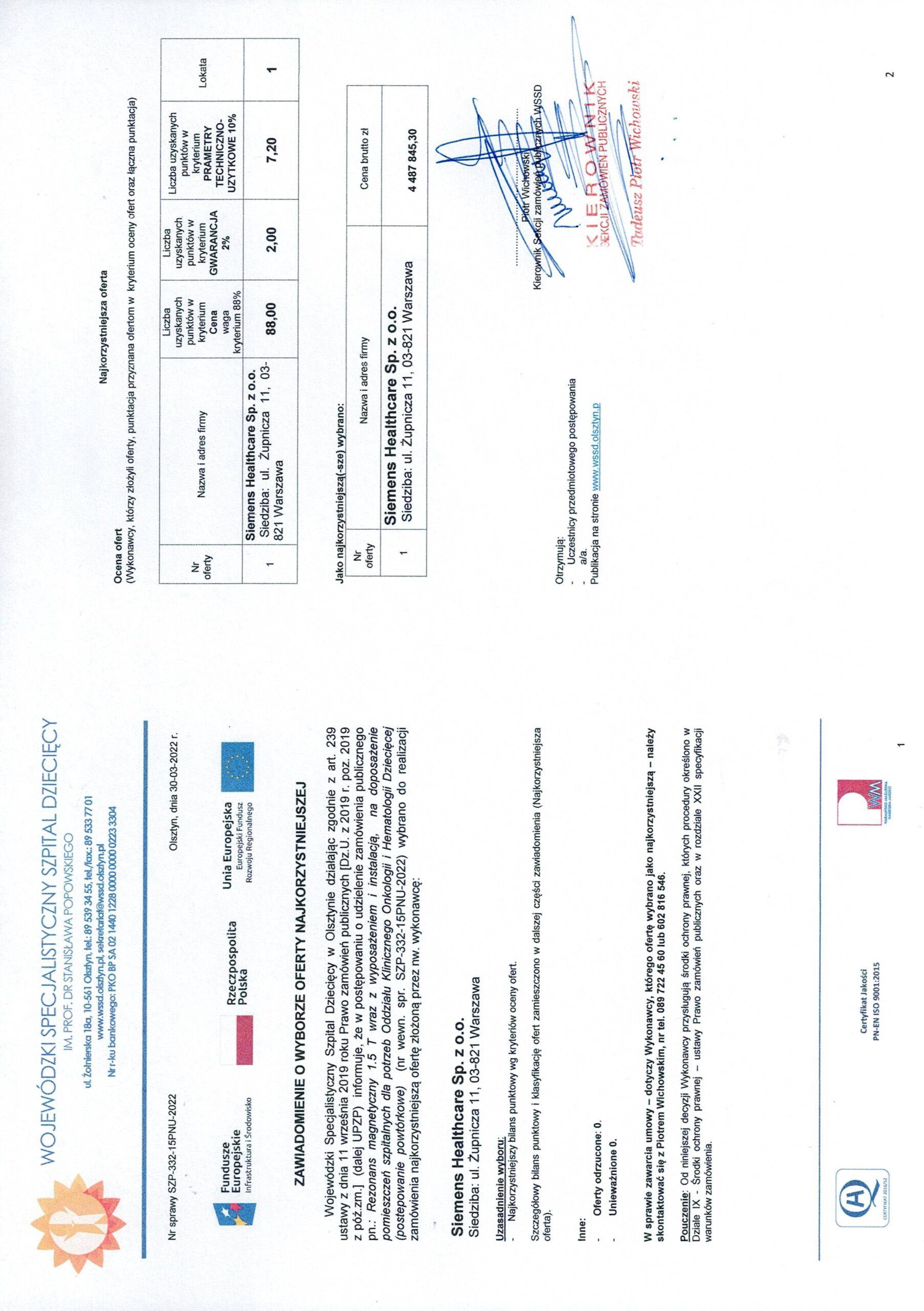 | Zawiadomienie o wyborze oferty najkorzytniekszej | 2022-03-30 12:04:22 |
