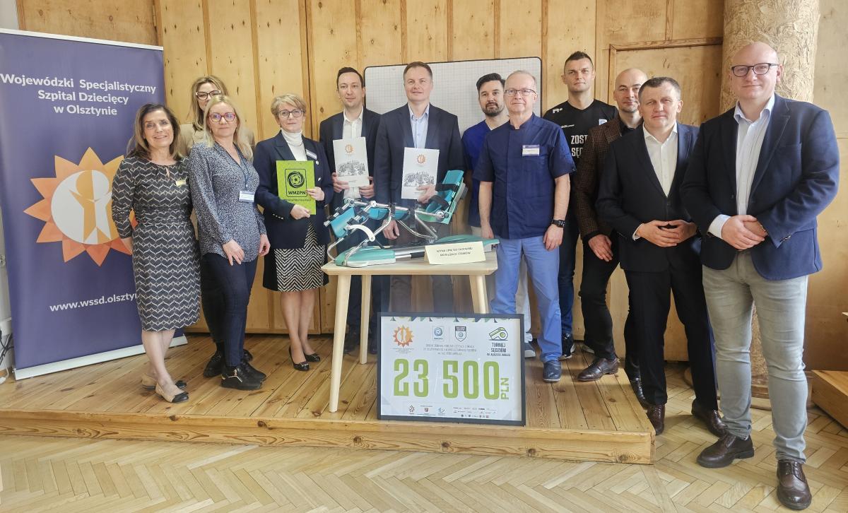 Środki na zakup sprzętu pochodzą z aukcji charytatywnej towarzyszącej corocznemu Olsztyńskiemu Turniejowi Sędziów im. Alojzego Jarguza o Puchar Marszałka Województwa Warmińsko-Mazurskiego w halowej piłce nożnej, który odbył się na początku tego roku. Warty 23 500 zł aparat trafi do Oddziału Ortopedyczno-Urazowego z Chirurgią Kręgosłupa, gdzie będzie służył m.in. do usprawniania młodych sportowców, którzy doznali urazów i kontuzji.